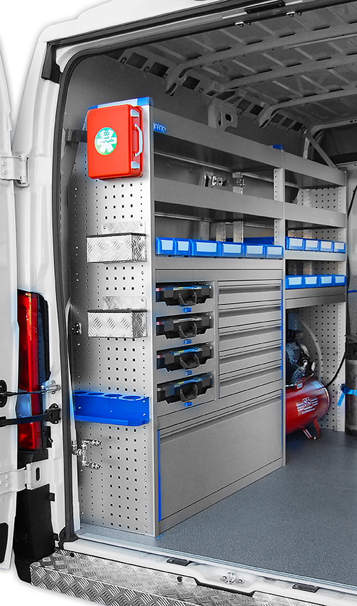 Chez MASTERVAN, nous installons du mobilier de rangement en aluminium anodisé dans tous types de véhicules utilitaires et camionnettes.